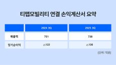 [아이뉴스24 정유림 기자] 티맵모빌리티는 올해 3분기 매출 738억원을 기록했다고 13일 밝혔다. 영업손실은 13억원으로,- 2025-11-13 17:15