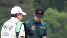 [mhn포토] 문도엽, 캐디 이연호와 살피는 퍼트 라인