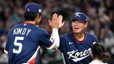 7일 일본 도쿄돔에서 열린 WBC(월드베이스볼클래식) 한국과 일본의 경기. 선수 소개때 류지현 감독이 김도영화 하이파이브를 하- 3시간전