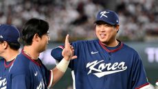 7일 일본 도쿄돔에서 열린 WBC(월드베이스볼클래식) 한국과 일본의 경기. 선수 소개때 이정후가 안현민과 포옹을 하고 있다.- 3시간전