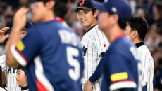[포토] 미소짓는 오타니, 더그아웃엔 다르빗슈 유니폼이