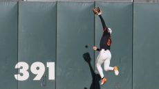 펜스 충돌로 어깨다쳤던 이정후, 이번에도 펜스로 돌진해 호수비 "박수"