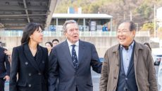 윤동한 회장, 슈뢰더 전 총리 부부 맞아…콜마 세종공장 함께 둘러봐
