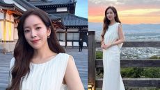“순백의 사랑해”… 한지민, 일몰보다 눈부신 교토 드레스 자태