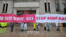 “힘에 의한 평화가 말이 되나”···서울 한복판 탱크 행진에 시민단체 항의 퍼포먼스