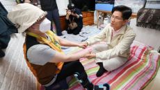 [포토] 쪽방촌 주민과 대화하는 김문수