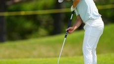[골프in포토]배용준,홀을 보고 라인을 맞춘다