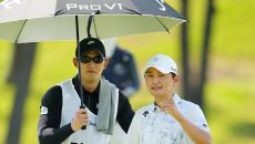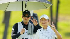 [골프in포토]김영수,콤비 캐디와 승리의 브이