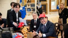 日대표에 ‘MAGA 모자’ 씌운 트럼프, ‘충성 연출’ 논란