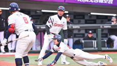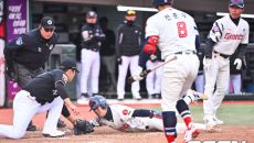 [사진]이승엽 감독, '강민호 오버런 지적'