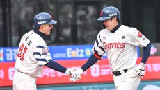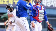 [사진]강민호, 레예스 실점은 잊어