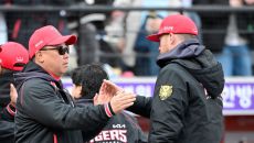 [사진]아담 올러와 승리 기쁨 나누는 KIA 이범호 감독