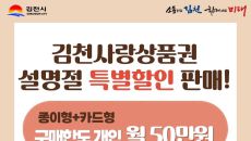 김천시, 설 명절맞이 2월 한 달간 김천사랑상품권 15% 특별 할인 판매