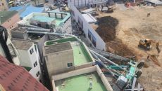 (울산=연합뉴스) 허광무 기자 = 지난 29일 울산에서 아파트 신축 현장에서 37m 높이 중장비가 주택가로 넘어진 것과 관련,- 2023-03-30 17:33