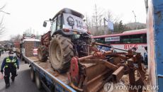 (서울=연합뉴스) 이영섭 김준태 최원정 기자 = 전국농민회총연맹(전농)의 '트랙터 시위'가 경찰에 막히면서 25일 서울 서초구- 2025-03-25 22:07