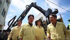 (가평=연합뉴스) 우영식 기자 = 김동연 경기지사는 20일 집중호우 피해를 본 가평군을 방문해 "매몰된 지역이나 격리된 지역에- 2025-07-20 16:09