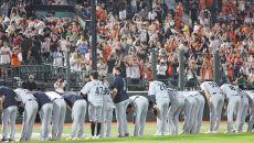 ▲ 팬들에게 인사하는 한화 선수들 프로야구에서 한화가 안치홍의 결승 3점 홈런을 앞세워 5연승을 달리며 단독 선두를 지켰습니다- 2025-06-17 23:01