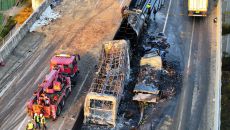 ▲ 17일 오전 3시 12분쯤 상주영천고속도로 양방향에서 대형 교통사고로 화재가 발생한 가운데 당국이 사고 수습을 하고 있다.- 2025-11-17 08:51