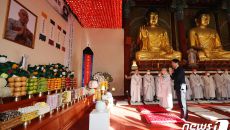 (서울=뉴스1) 박지혜 기자 = 오세훈 서울시장이 1일 오전 서울 종로구 조계사 대웅전에 마련된 자승스님 분향소를 찾아 조문하- 2023-12-01 09:53