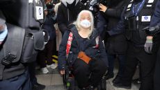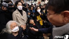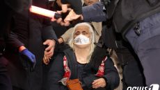 경찰 벽 사이로 퇴거하는 박경석 대표