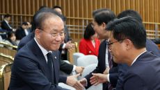 (서울=뉴스1) 황기선 기자 = 윤재옥 원내대표가 1일 오전 서울 여의도 국회에서 열린 원내대책회의에서 의원들과 악수를 나누고- 2023-12-01 08:58