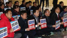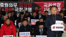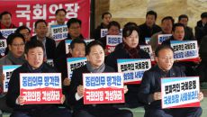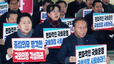 본회의장 앞에서 구호 외치는 국민의힘