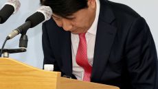 (서울=뉴스1) 장수영 기자 = 이동관 방송통신위원장이 1일 경기 정부과천청사 방통위에서 사퇴 관련 입장을 발표한 뒤 고개 숙- 2023-12-01 15:37