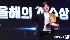 (서울=뉴스1) 권혁준 기자 = KBO리그 홈런·타점왕 노시환(23·한화 이글스)이 동료 선수들이 뽑은 최고의 선수로 선정됐다- 2023-12-01 15:24