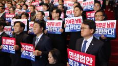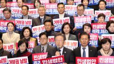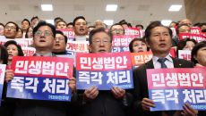 민주당, 로텐홀 앞에서 민생법안 처리 촉구