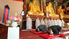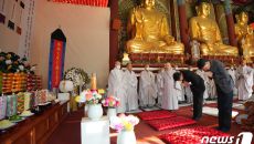 (서울=뉴스1) 박지혜 기자 = 권성동 국민의힘 의원이 1일 오전 서울 종로구 조계사 대웅전에 마련된 자승스님 분향소를 찾아- 2023-12-01 13:07