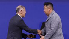 안산에게 공로패 수여하는 정의선 회장