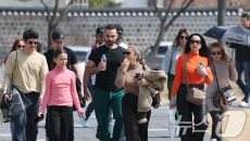'포근한 봄 날씨 즐기는 관광객들'