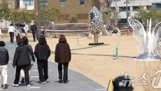 조각작품 사이로 산책 즐기는 시민들