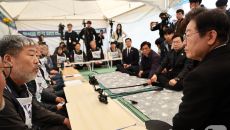 (서울=뉴스1) 임세영 기자 = 이재명 더불어민주당 대표가 21일 서울 종로구 광화문 인근 비상행동 공동의장단 단식농성장을 찾- 2025-03-21 13:58