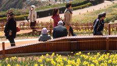 바다와 어우러진 노란 수선화 감상