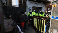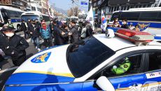 (서울=뉴스1) 박정호 기자 = 21일 오전 서울 종로구 재동 헌법재판소 앞으로 가려는 시민들이 막힌 길 앞에서 경찰과 대화하- 2025-03-21 12:08