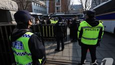 (서울=뉴스1) 박정호 기자 = 21일 오전 서울 종로구 재동 헌법재판소 앞에서 경찰이 경계 근무를 하고 있다. 2025.3.- 2025-03-21 11:50