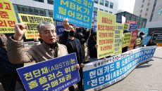 현대카드 앞에서 전단채 피해 원금반환 촉구하는 홈플 피해자들