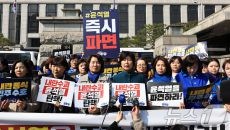 윤석열 파면 촉구 기자회견 하는 민주당 전국여성위