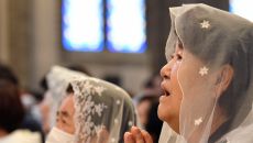 (서울=뉴스1) 사진공동취재단 = 20일 서울 명동 성당에서 열린 부활대축일 미사에 참석한 신자들이 경건한 마음으로 미사를 드- 2025-04-20 15:45