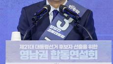 (울산=뉴스1) 안은나 기자 = 김동연 더불어민주당 대선 경선 후보가 20일 오후 경남 울산전시컨벤션센터에서 열린 영남권 합동- 2025-04-20 15:43