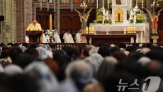 (서울=뉴스1) 사진공동취재단 = 20일 서울 명동 성당에서 열린 예수 부활 대축일 미사에서 정순택 서울대교구장 미사를 집전하- 2025-04-20 15:44