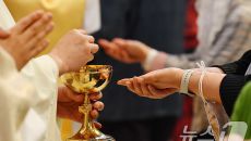 성체 모시는 신자들