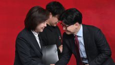 (서울=뉴스1) 국회사진취재단 = 나경원, 한동훈 국민의힘 대선 경선 후보가 20일 오후 서울 강서구 ASSA아트홀에서 열린- 2025-04-20 15:28