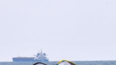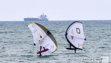 (포항=뉴스1) 최창호 기자 = 20일 오후 경북 포항시 송도해수욕장에서 윙포일 동호인들이 파도를 타고 있다. 2025.4.2- 2025-04-20 14:14
