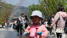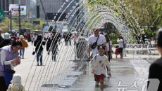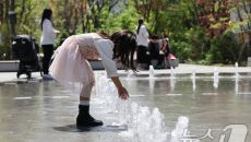 (서울=뉴스1) 허경 기자 = 봄철 마지막 절기 곡우(穀雨)인 20일 서울 광화문광장에서 한 어린이가 바닥분수을 만져보고 있다- 2025-04-20 13:15