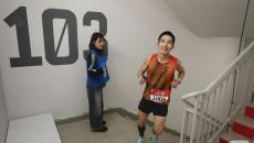 메달 목에 거는 스카이런 완주자