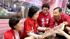(대구=뉴스1) 남승렬 기자 = 김문수 국민의힘 대통령 후보 아내인 설난영 여사(왼쪽에서 두 번째)가 24일 오후 대구 중구- 2025-05-24 17:40