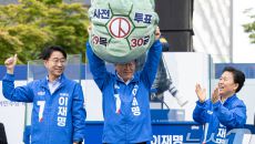'사전투표' 독려 퍼포먼스 펼치는 이재명
