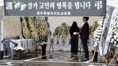 (제주=뉴스1) 홍수영 기자 = 제주 모 중학교 교사 A 씨가 사망한지 사흘째인 24일 제주도교육청 앞마당에 마련된 합동 분향- 2025-05-24 11:25